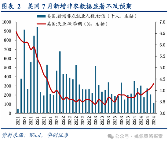 通胀&就业数据低于预期,7月FOMC会议表态偏鸽,当前市场定价美联储9月降息50bp。2024年6月美国通胀数据整体略低于市场预期,同比中枢继续回落。6月CPI同比增3%,低于预期的3.1%和前值的3.3%。核心CPI同比增3.3%,低于预期和前值的3.4%,核心CPI环比0.1%,显著低于预期和前值的0.2%,为2021年3月以来最低水平。7月FOMC声明新增了对就业市场降温的担心,并淡化对通胀风险的描述,鲍威尔表态整体偏鸽,认为经济已经接近适合降息的时点,如果数据允许,美联储最早可能在9月降息。议息会议后,CME Fed Watch显示市场预期美联储9月降息概率为89%,较前值的86%有所上升,此外,对11月降息的预期亦从57.5%回升至63.2%。8月2日美国劳工部公布的7月新增非农数据显著不及预期,美国2024年7月新增非农11.4万人,低于市场预期的17.5万人,低于前值的17.9万人。就业数据公布后,市场定价的降息次数回升,对9月降息的定价从25bp升至50bp。根据CME Fed Watch,9月美联储降息25bp和50bp的概率分别是31%和69%,前值为78%和22%。