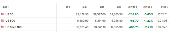 - 美股期货集体下挫,纳斯达克100指数期货跌2.21%,标普500指数期货跌1.23%。
