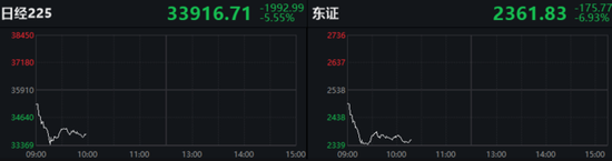 日股跌幅持续扩大,日经225指数、日本东证指数暴跌超10%。