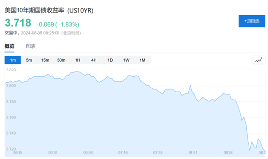 美国10年期国债收益率下跌7个基点,至3.72%,为2023年6月以来的最低水平。