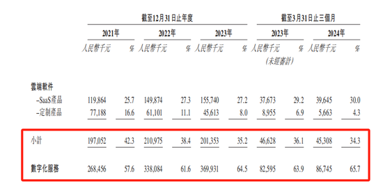 太美医疗科技的主要收入来源于云端软件和数字化服务,其中,2021年至2023年云端软件销售收入分别为1.97亿元、2.11亿元、2.01亿,分别占当期总收入的42.3%、38.4%、35.2%;数字化服务收入分别为2.69亿元、3.38亿元、3.7亿,分别占当期总收入的57.6%、61.6%、64.5%。