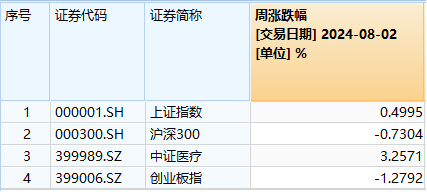 近期来看,医疗板块多次放量反弹,跑赢大市。例如,上周(7月29日-8月2日),中证医疗指数单周上涨3.26%,大幅超越上证指数(0.5%)、创业板指(-1.28)及沪深300(-0.73%)等主要指数。