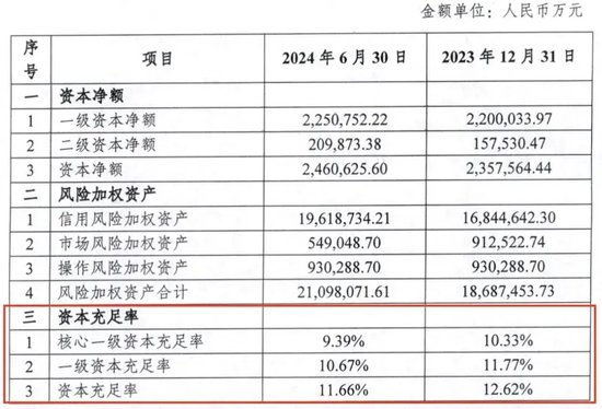 随着业务带来的资本消耗,以及资产质量面临一定下行压力的传导作用,也间接影响到了该行资本充足率水平。数据显示,今年上半年该行的核心一级资本充足率、一级资本充足率、资本充足率分别为9.39%、10.67%、11.66%,相比2023年末依次下滑了0.94个百分点、1.1个百分点、0.96个百分点。可见,重庆三峡银行各级资本充足水平整体有所下降,核心一级资本面临一定补充压力。