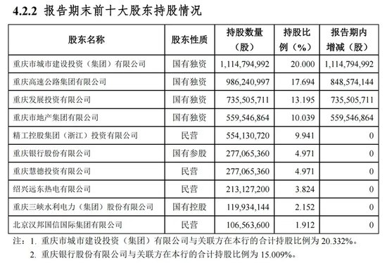 一番洗牌后,据2023年财报显示,重庆城投为重庆三峡银行第一大股东,持股20%;重庆高速持股17.69%,成为第二大股东;重庆发展为第三大股东,持股13.2%;重庆地产集团去年底加码后升为第四大股东,持股10.04%。
