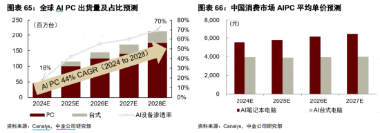 政策方面,消费品以旧换新有望加速AIPC渗透率提升,利好半导体芯片行业。认为,发改委、财政部印发的《关于加力支持大规模设备更新和消费品以旧换新的若干措施》中,包含对个人消费者购买2级及以上能效或水效标准的电脑等8类家电产品给予以旧换新补贴(产品售价的15%),将有望提高消费者的换机需求,加速AIPC渗透率的提升。此前,据Canalys预测,全球兼容AI的PC有望在25年渗透率达到42%,27年AIPC将占到PC出货量的60%。而在今年上半年,联想、惠普、戴尔、微软等厂商均陆续推出了AIPC产品。