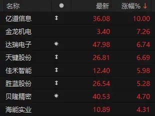 今日,消费电子板块异动,AI智能眼镜方向领涨。截至收盘,20%幅度涨停,亿道信息、伟时电子等个股也纷纷涨停。