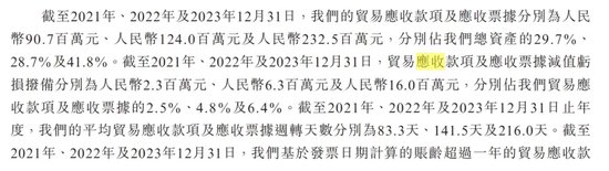 数据显示,报告期内,公司的贸易应收款项及应收票据分别为9070万元、1.24亿元及2.33亿元。同时,公司的贸易应收款项平均周转天数更是大幅上行,报告期内,分别为83.3天、141.5天及216.0天。