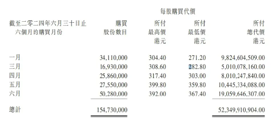 公告显示,今年上半年腾讯控股已合计耗资523亿港元回购154773万股股份,购回的股份其后已被注销。将长远提高股东价值落到实处。