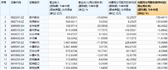 上半年营业总收入超5467亿元,归母净利润802亿元,目前包揽中证100“营收榜”、“利润榜”冠军!